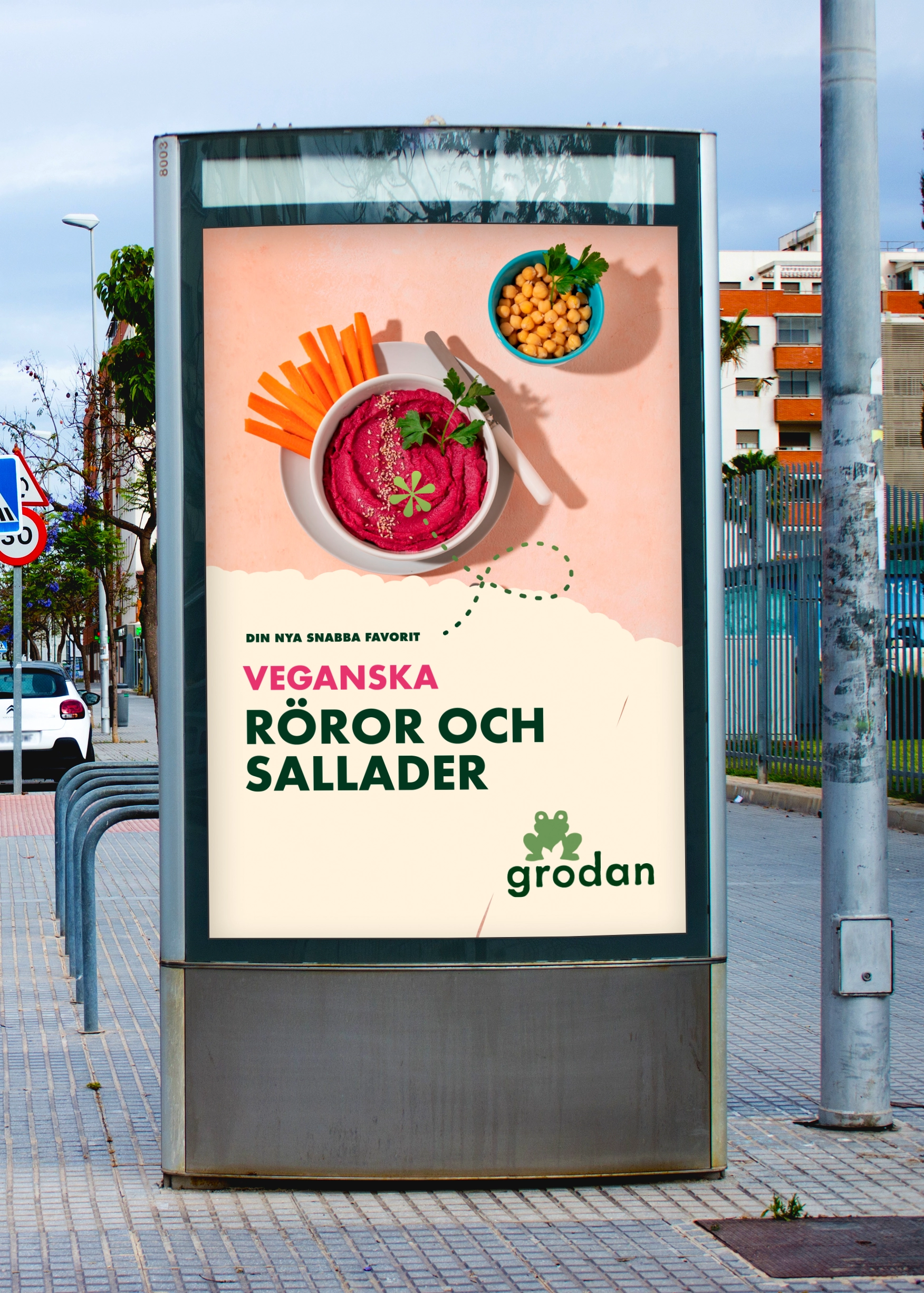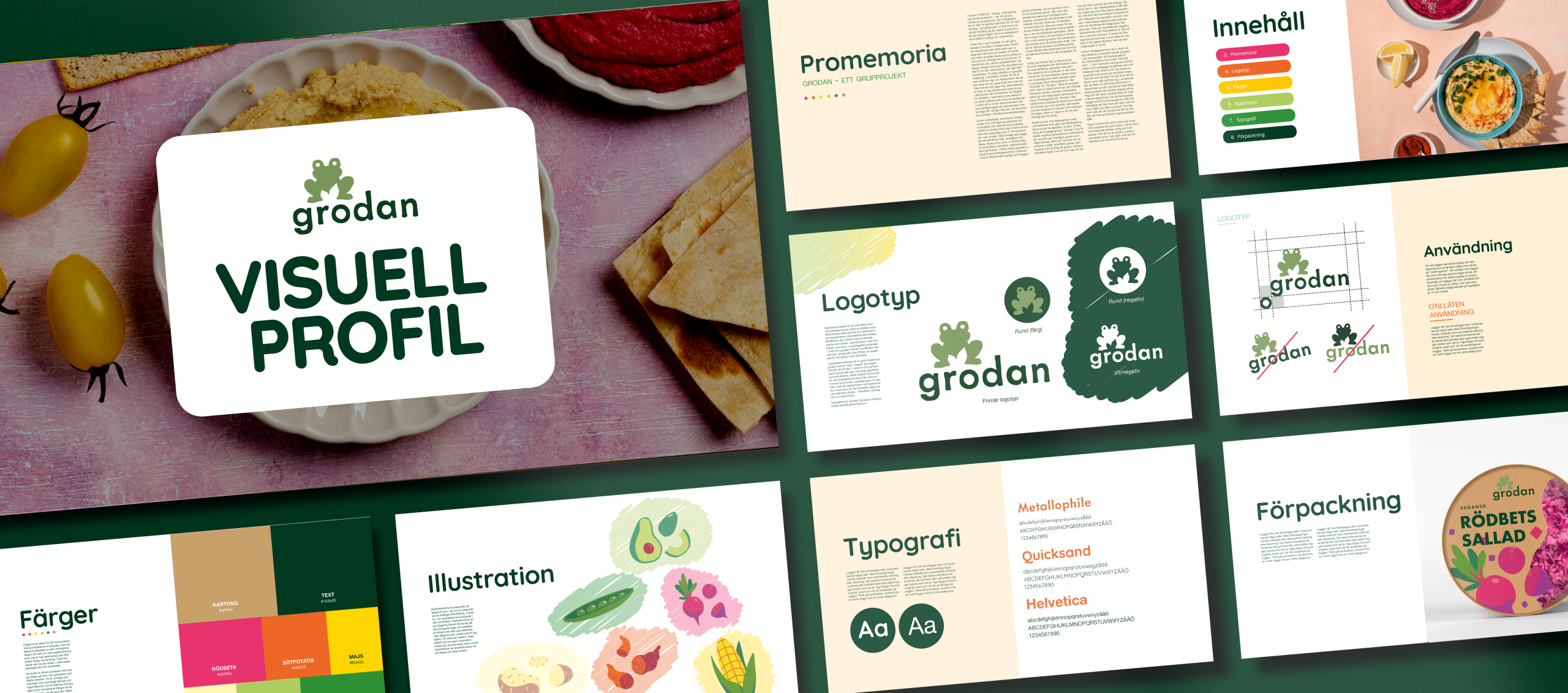 Grodan är en marknadskommunikativ identitet anpassad för ett fiktivt företag som tillverkar kalla röror och sallader. Målgruppen är upptagna unga vuxna som vill upprätthålla en vegansk och hälsosam kosthållning.